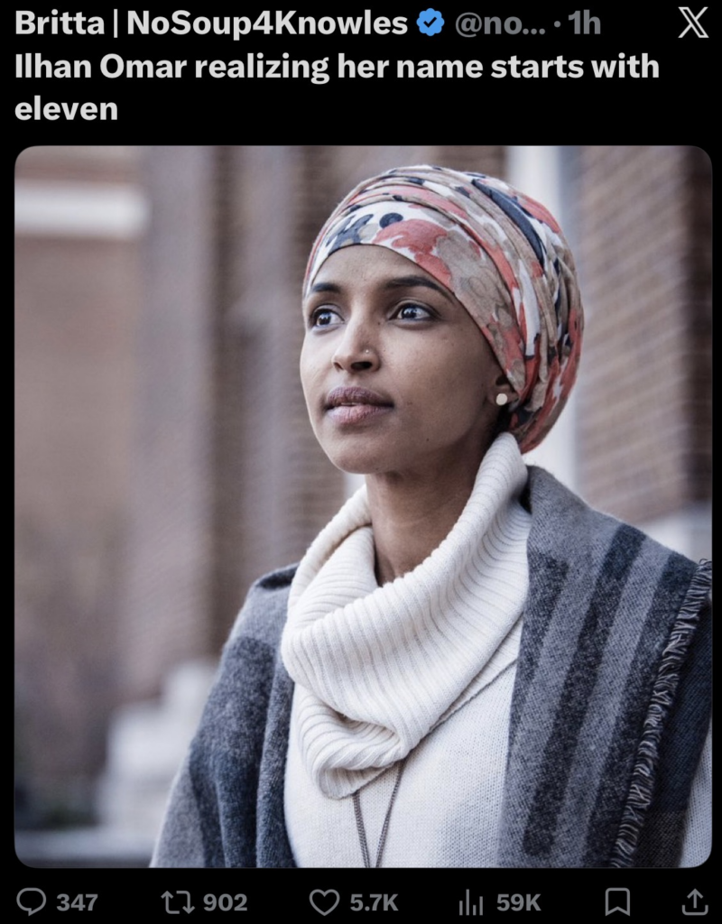 – ILHAN OMAR WON YESTERDAY’S ‘VIRALLY STUPID’ AWARD IN A ROMP